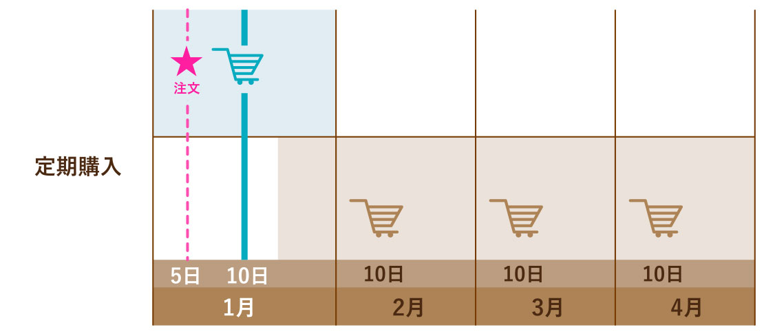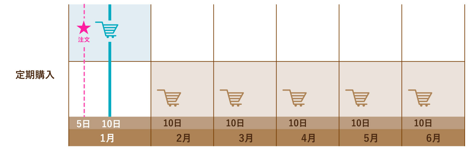定期購入の配送日は毎月10日になります。また10日が土日祝の場合は翌営業日の配送とさせて頂きます。